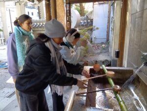 1月14日、学生と先生たちは毎年恒例の「新年参拝」に出かけました。澄んだ冬の空気の中、難波八坂神社で新しい一年の健康と学業成就を祈願しました。